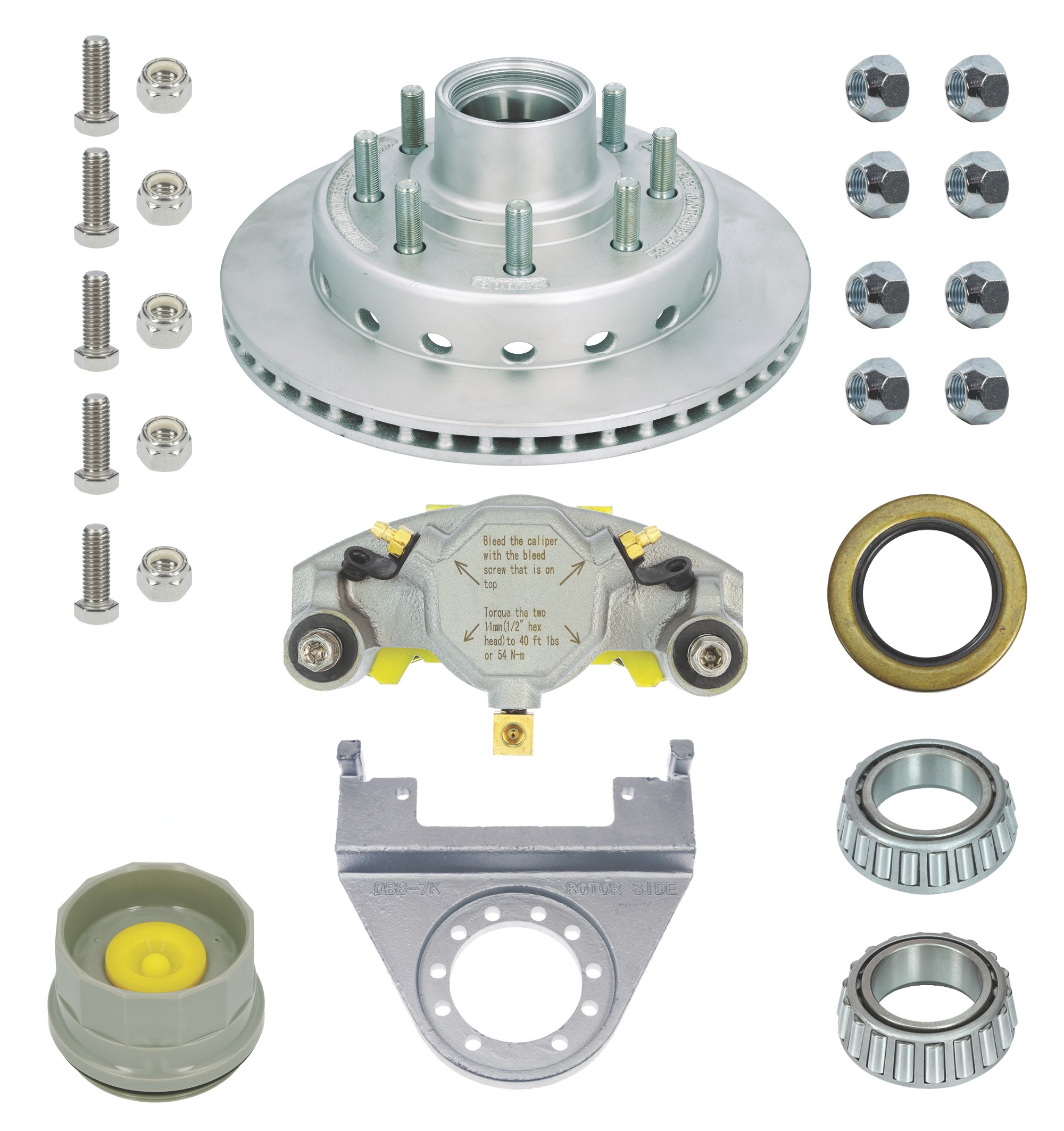 - Each 1/DBI kit includes Rotor or Rotor/Hub, Disc Brake Caliper, Caliper Mounting Bracket, Inner Bearing, Outer Bearing, Dust Cap, Grease Seal, Mounting Bracket Hardware, Lugnuts, and Rubber Plug