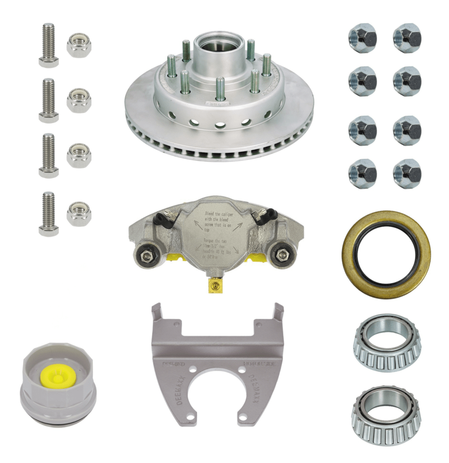 - Each 1/DBI kit includes Rotor or Rotor/Hub, Disc Brake Caliper, Caliper Mounting Bracket, Inner Bearing, Outer Bearing, Dust Cap, Grease Seal, Mounting Bracket Hardware, Lugnuts, and Rubber Plug.