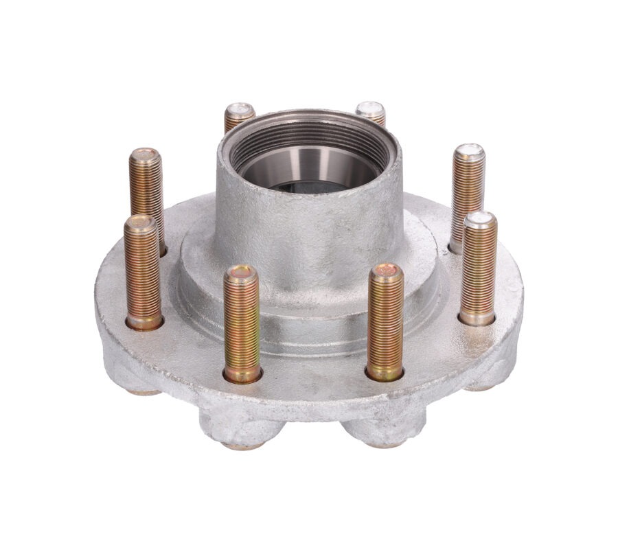 8 ON 6.5″ w/ 2 7/8-12″ OIL Threaded HUB GALVANIZED COATED WITH 25520 and 02420 BEARING RACES AND (YELLOW) 5/8″-18 WHEEL STUDS 16.3 lbs. DX# 008-399-08