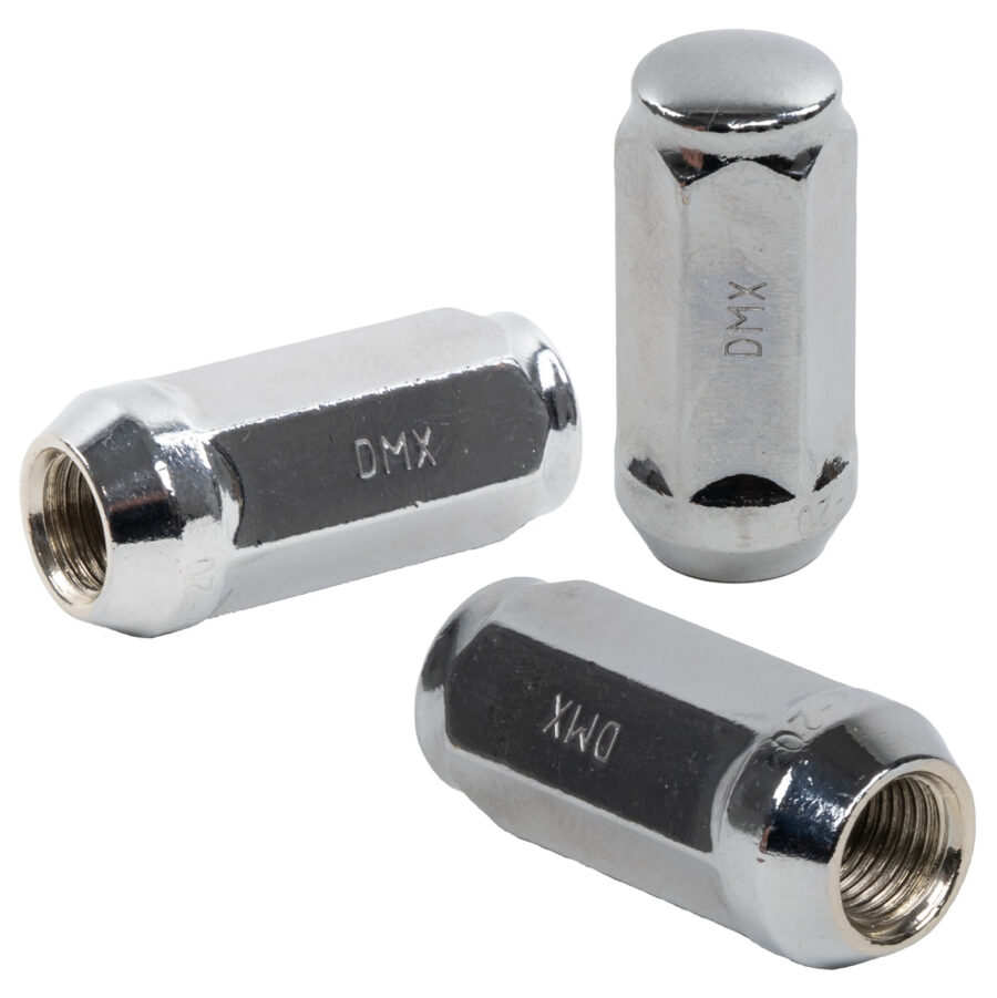 1/2″ x 20 thread XL Long- Closed End Bulge Chrome Acorn Style Lug Nuts – Conical 60 Degree Seat – 3/4″ hex – 1.875″ height